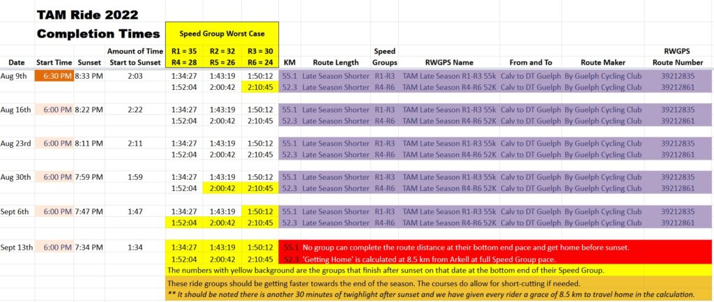 TAM Ride Late Season Ride Duration Calculator